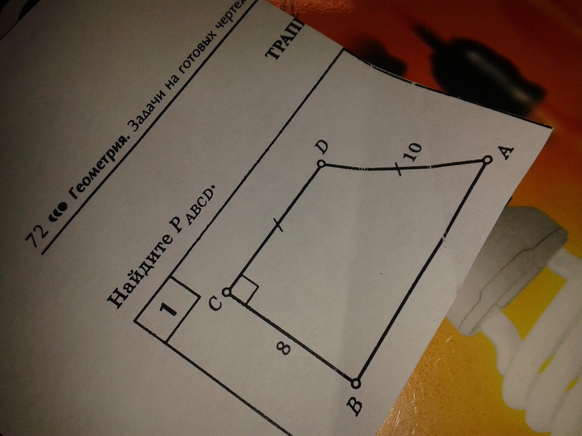 Проведем высоту DH. DH=8(т.к.BCDH - прямоугольник)