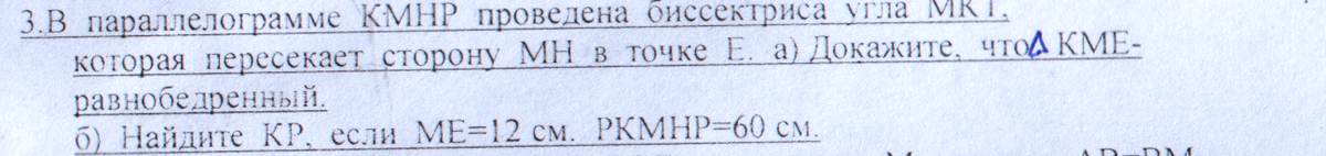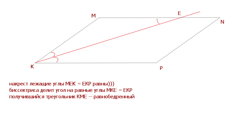KP = ME + EN = 12 + ?--в условии про угол что-то непонятное написано...