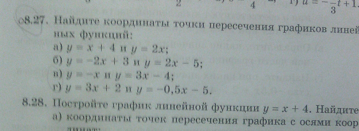 у тебя даны функции , строй систему координат , для каждой функции находи точки(вместо х подставляй цифры , у- вычисляй)строй и находи координату где пересекаются