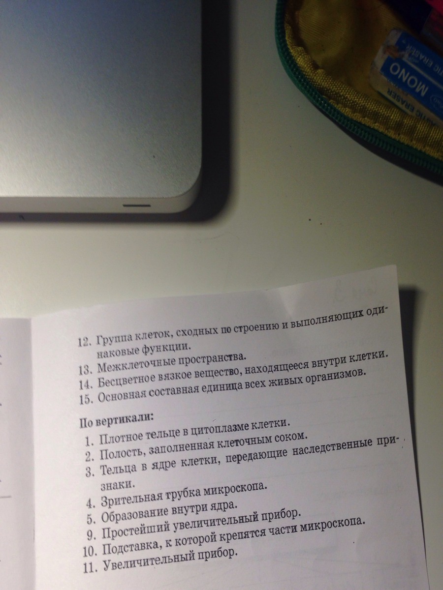 горизонталь(есть ещё, помни пож-та)3.Пластиды содержащие хлорофилл. 6)структура растительной клетки, отделяющуя её от окружающей среды. 7)часть микроскопа. 8)мелкие тельца, находящиеся в цитоплазме клетки