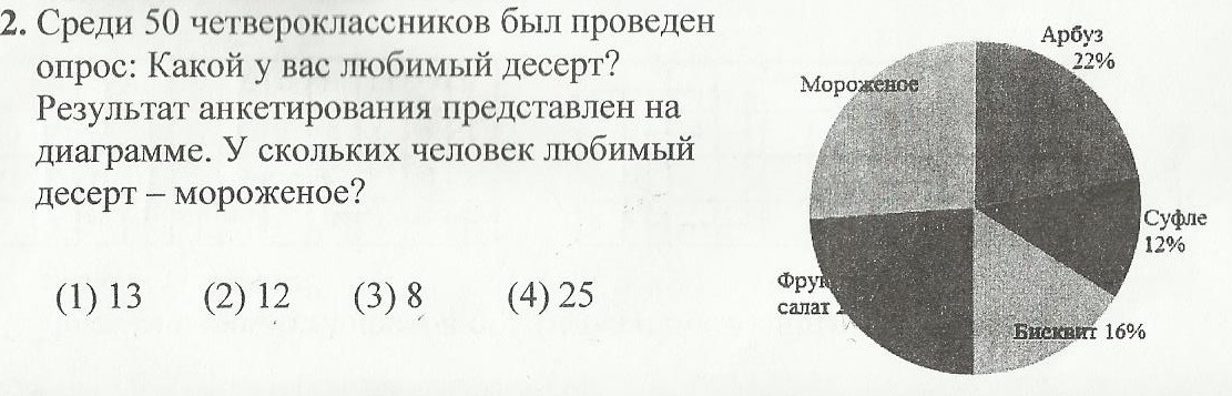 Смотрим по рисунку, большая часть детей любит мороженое -> ответ 4) 25