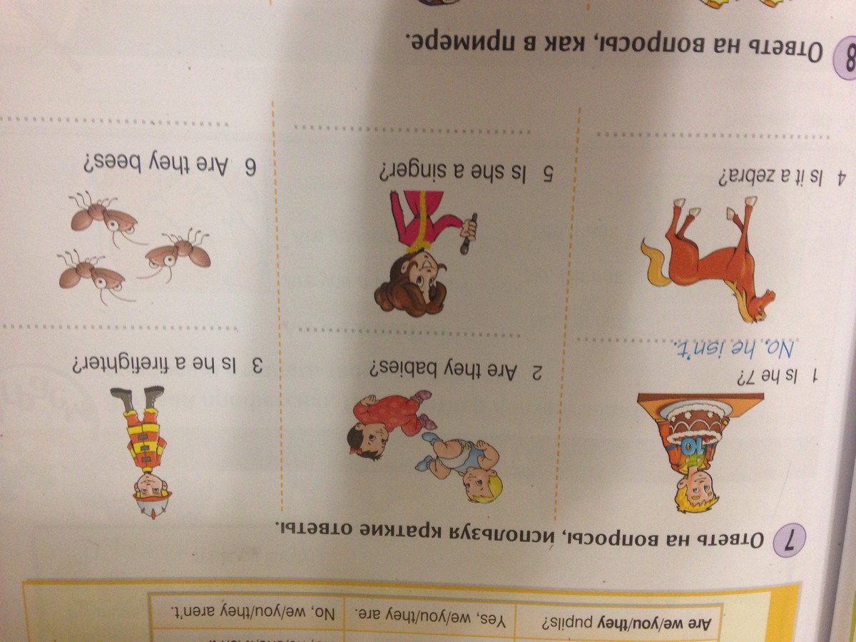 7 Ответь на вопросы используя краткие ответы. 1 пример ls he 7? Ho,he isn't а дальше посмотрите внимательней