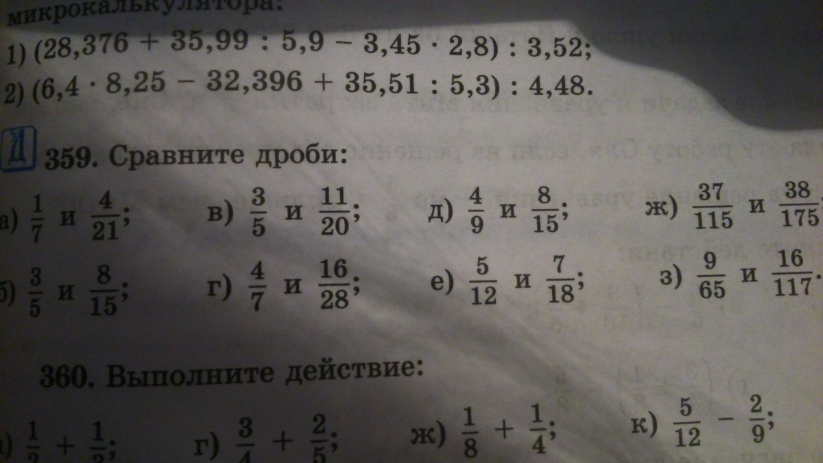Выполните номер 359 с а-з. Сравнение дробей. 6 класс. Если сможите выполните задание на листочке и сфоткайте его, затем отправьте сюда в ответ. Если не сможите то пишите просто так.