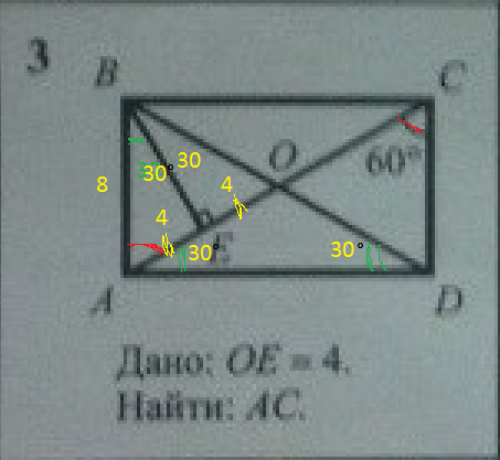 Диагонали прямоугольника равны и вточке пересечения делятся пополам.
