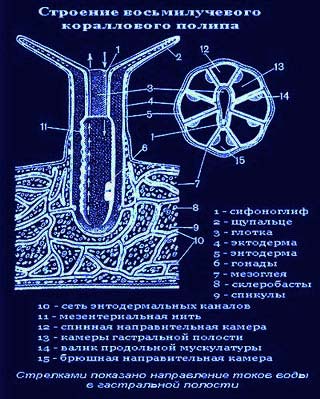 Коралловые полипы – класс морских беспозвоночных животных, относящихся к типу кишечнополостных. Это колониальные или реже одиночные полипы, обитающие в морях. В настоящее время различают два подкласса: восьмилучевые и шестилучевые коралловые полипы. К первой группе относят колониальные организмы, имеющие 8 перистых щупалец (красный коралл, морское перо, органчик).