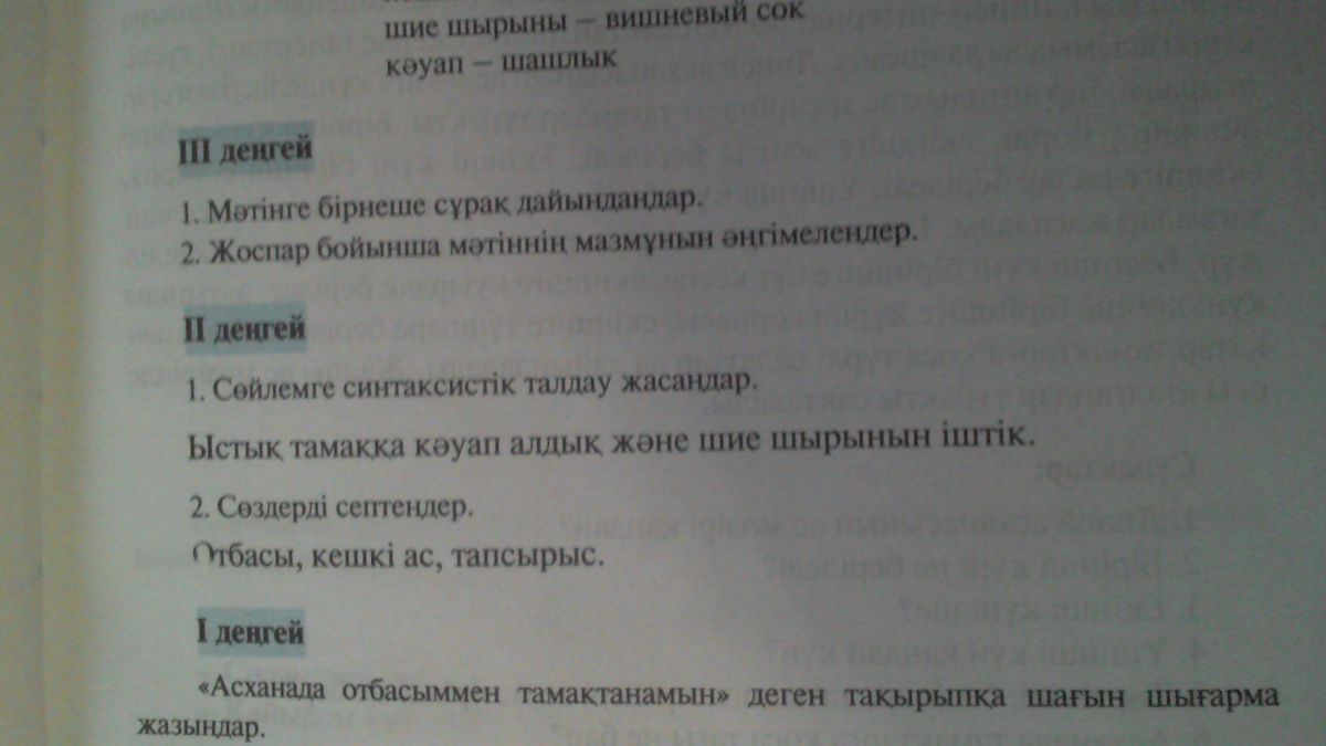 Ш.с отбасынан,кешкі астан,тапсырыстан