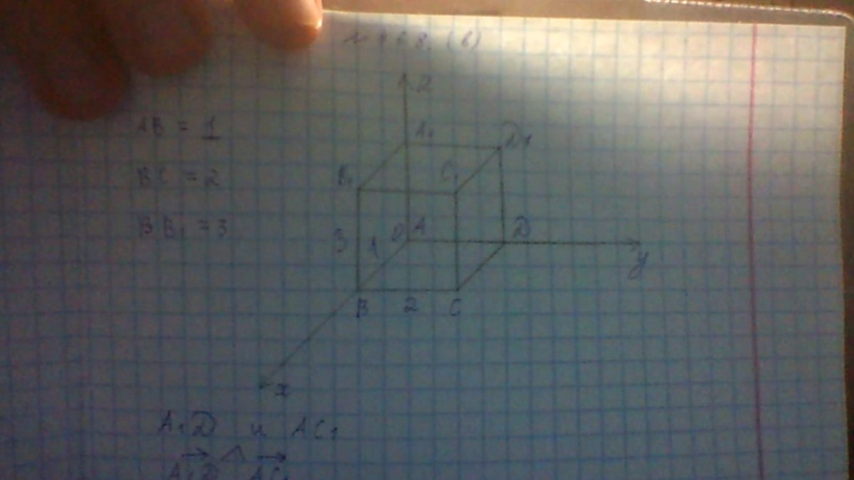 Координаты точек А(0,0,0,) , А1(0,0,3) , D(0,2,0), C1(1,2,3)