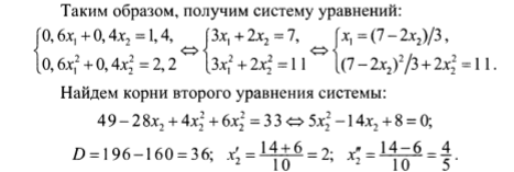 Далее из первого уравнения выразили x₁ через x₂, и получившееся выражение подставили во второе уравнение вместо x₁.
