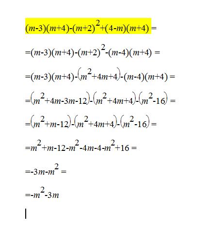 m(в квадрате) +4m - 3m -12 -2m + 4 +4m +16 -m(в квадрате) -4m