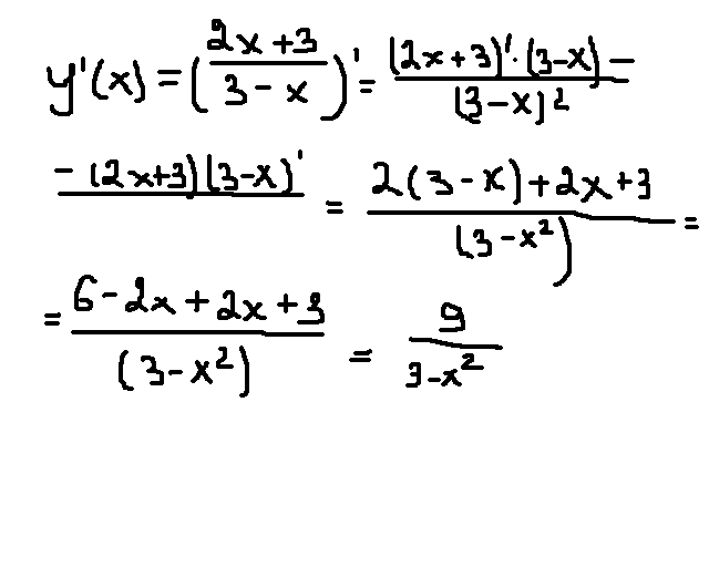 1)Найти производную y=2x+3 / 3-x