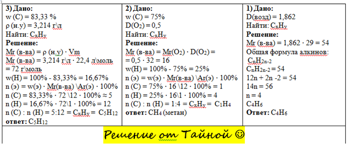 1. Установите молекулярную формулу алкина, если относительная плотность его паров по воздуху равна 1,862.