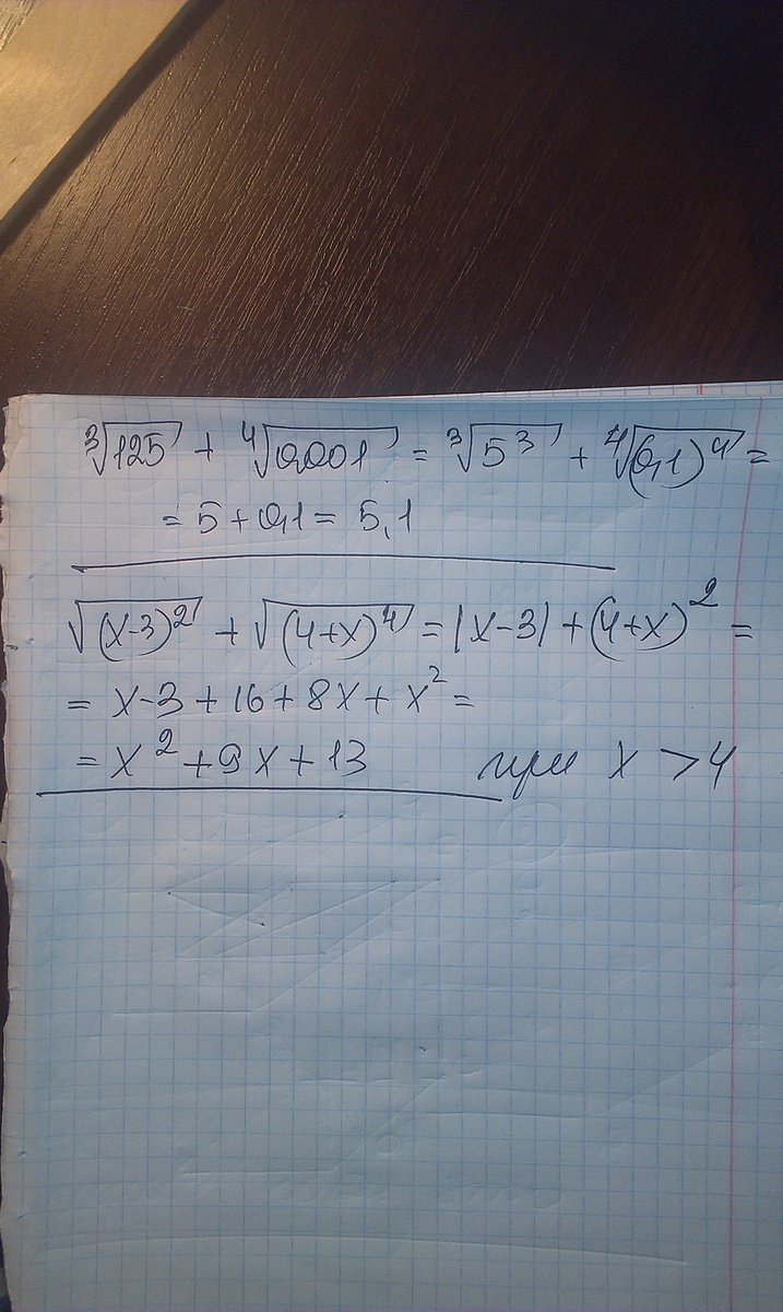 2) √(х-3)²+√(4+х)⁴, при х>4