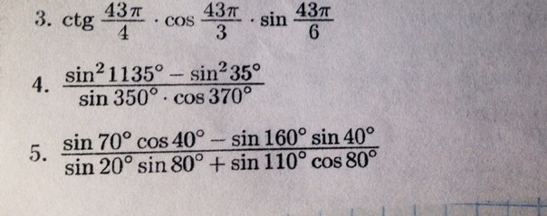 4.= (sin^2( 3pi + 55) - sin^2 35) / (sin(360 - 10) *cos(360+10)=