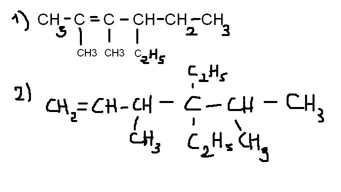 Напишите пожалуйста структурные формулы: 1) 2,3-диметил-4-этилгексен-2 2) 3,5-диметил-4,4-диэтилгексен-1