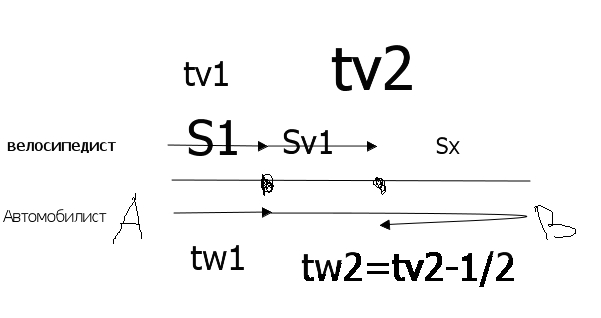 sv2= расстояние от первой до второй встречи для велосипедиста
