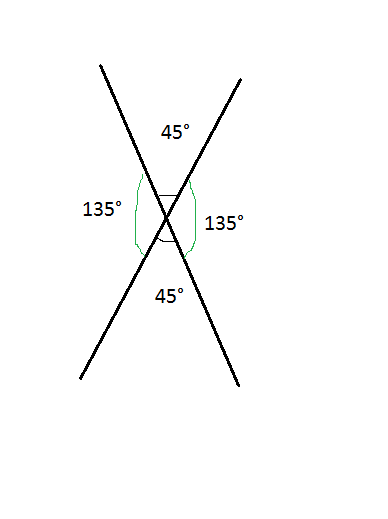 При пересечении двух прямых образуется две пары вертикальных углов.Вертикальные углы равны между собой.Значит имеем пару углов х и хи пару углов 3х и 3х