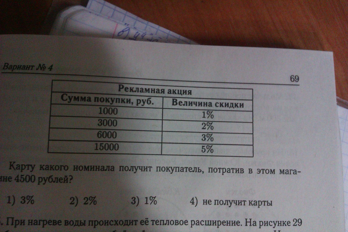 Магазин проводит рекламную акцию ,в рамках которой всем покупателям ,сделавшим покупку свыше определенной суммы ,дарится скидочная карта.В таблице приведена величина скидки и соответствующая ей сумма покупки(в рублях):
