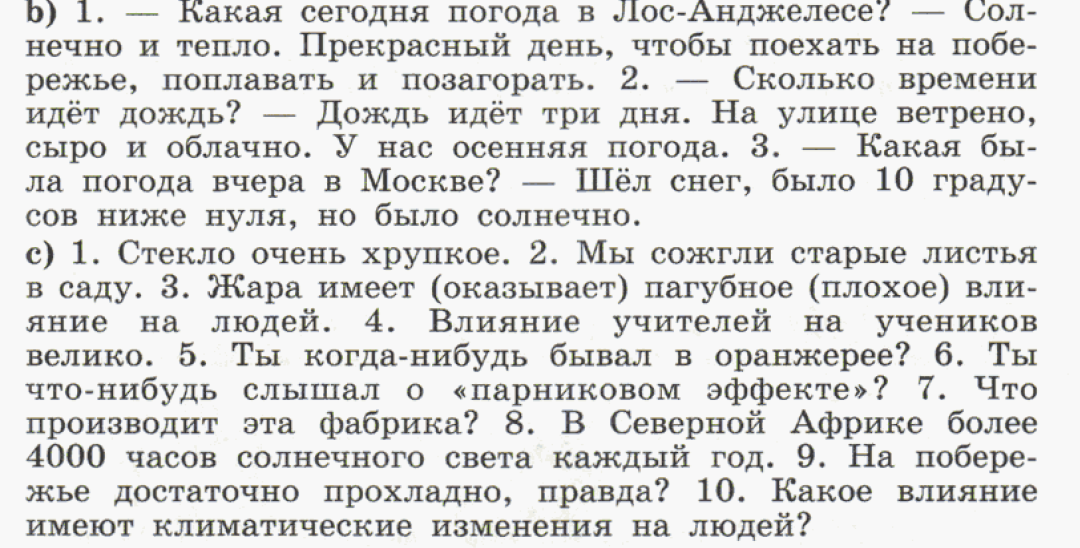 3 What was the weather like in Moscow? (Past Simple)- It snowed, it was 10 degrees below zero, but it was sunny. (Past Simple)