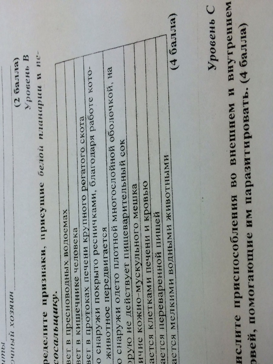 распределите признаки присущие белой планарии и печеночному сосальщику