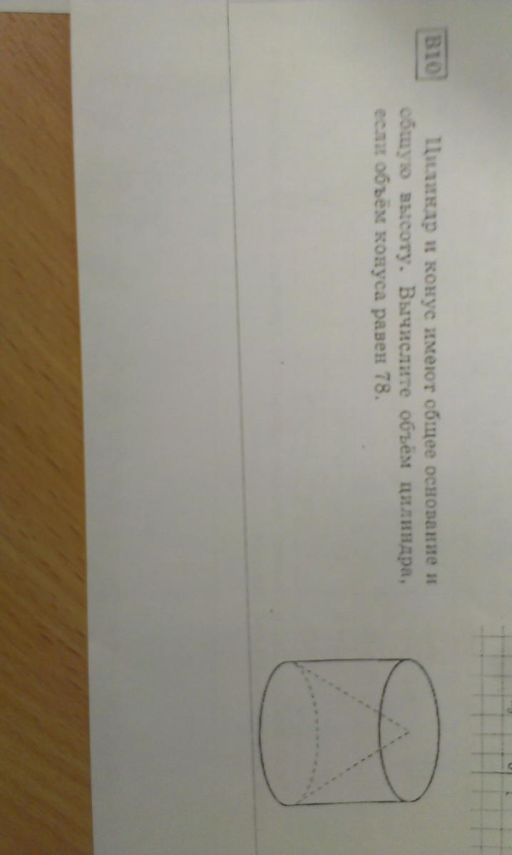 цилиндр и конус имеют общее основание и общую высоту . вычислитель объем цилиндра , если объем конуса равен 78