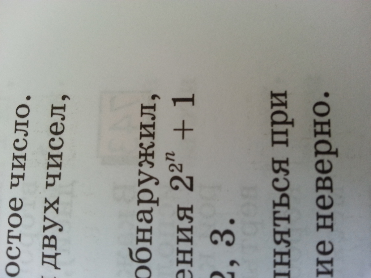 1)Французкий математик Пьер Ферма, живший в XVII веке, обнаружил, что при небольших натуральных значениях n значение выражения (смотр на рис. 1) является простым числом. Проверь это утверждение для n=1,2,3.