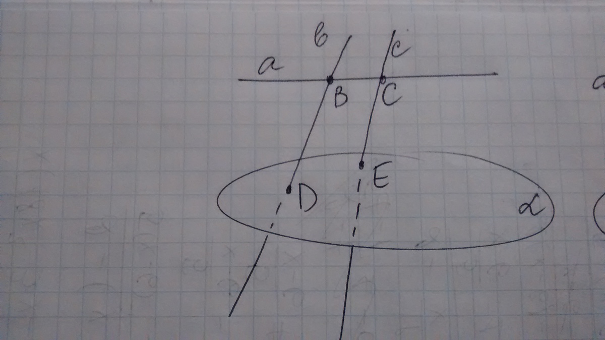 Прямая a параллельна плоскости a; прямые b и c, пересекающие прямую a соответственно в точках B и C, пересекают плоскость a соответственно в точках D и E. Сделайте рисунок. Как могут располагаться относительно друг друга прямые a и b?