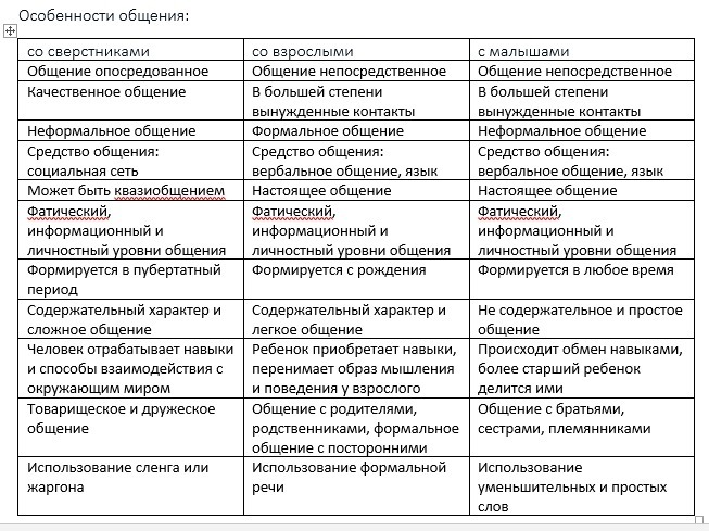 Таблица про особенности общения (со сверстниками,со взрослыми,с малышами) прикреплена ниже