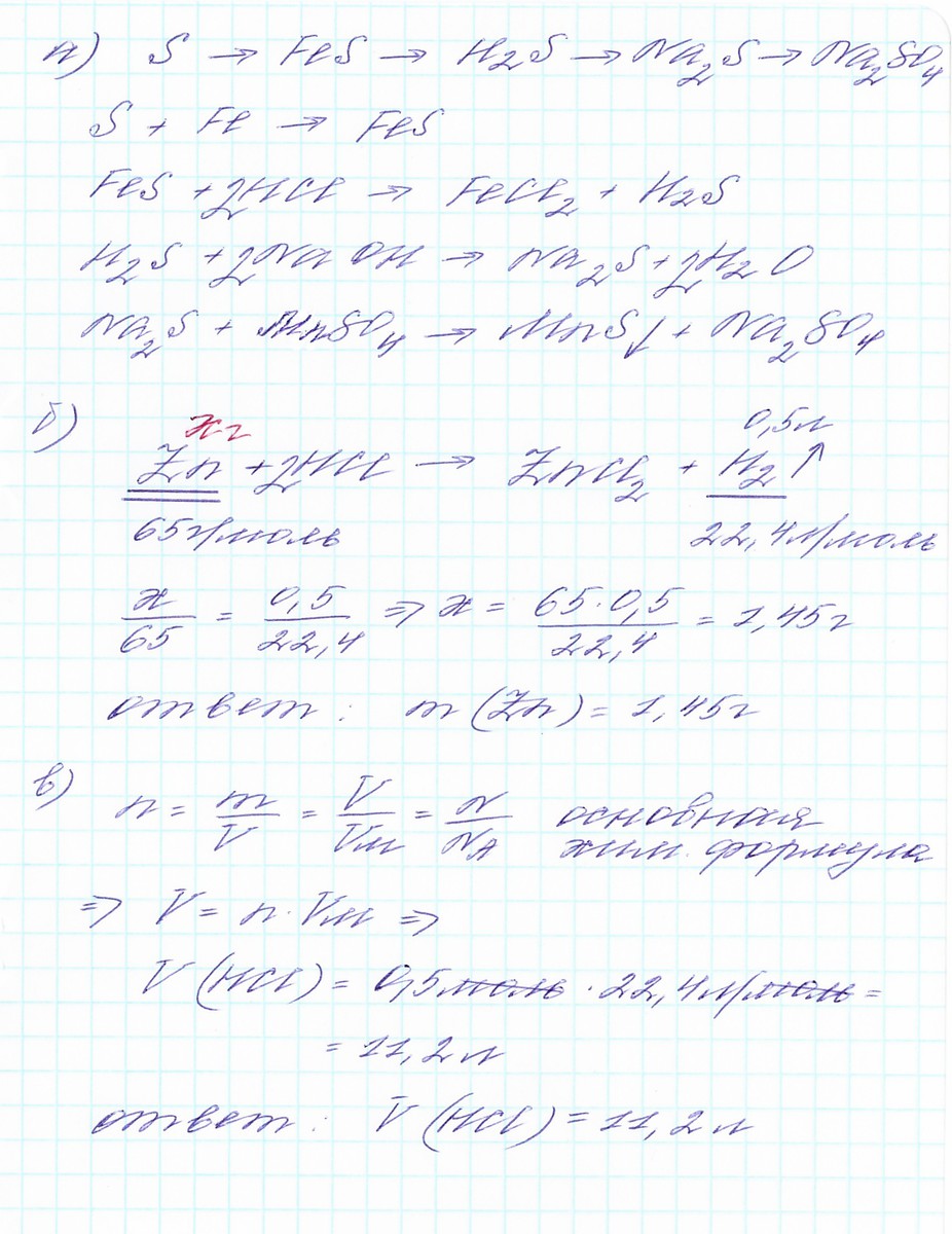 b) Сколько граммов цинка вступило в реакцию с соляной кислотой если образовалось 0,5л водорода
