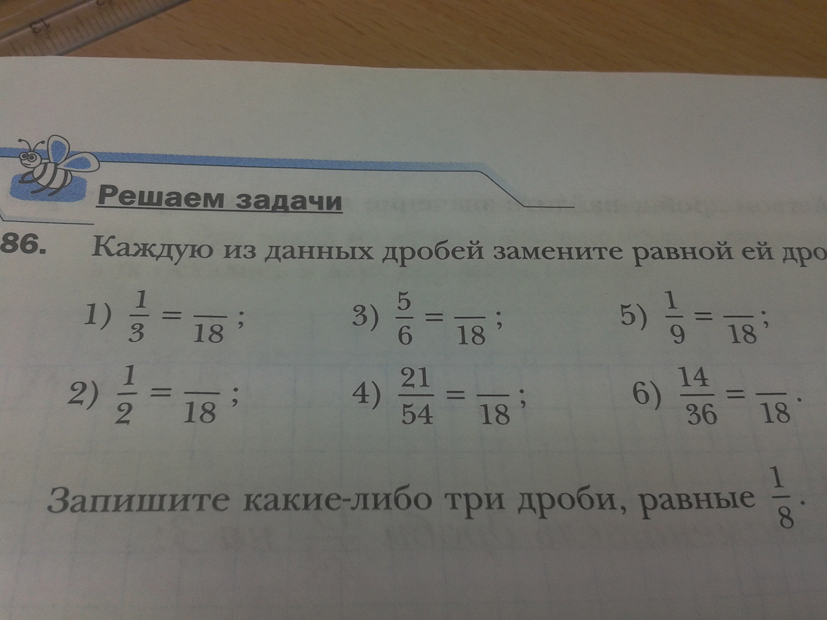 Каждую из данных дробей замените равной ей дробью, знаменатель которой равен 18.