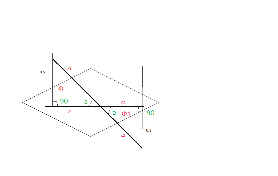 треугольники Ф и Ф1 подобные по двум углам <a и <90