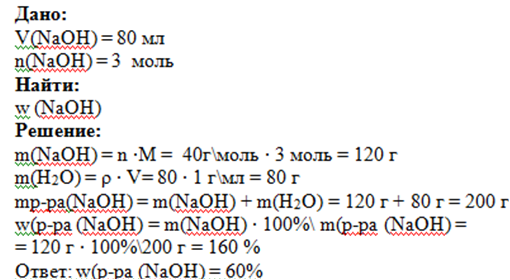 натрий гидроксид количеством 0,3 моль растворили в воде объемом 80мл
