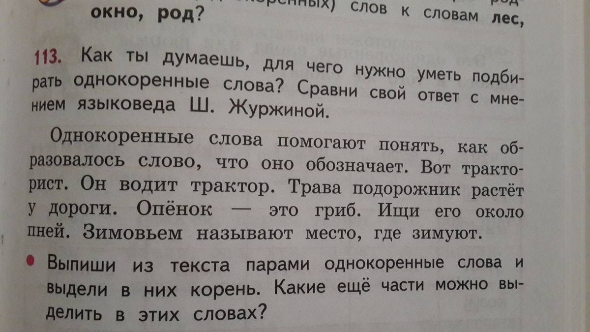 тракторист и трактор по моему корень -тракт, подорожниг и дорога -дорог -дорож, зимовьем и зимуют корень -зим