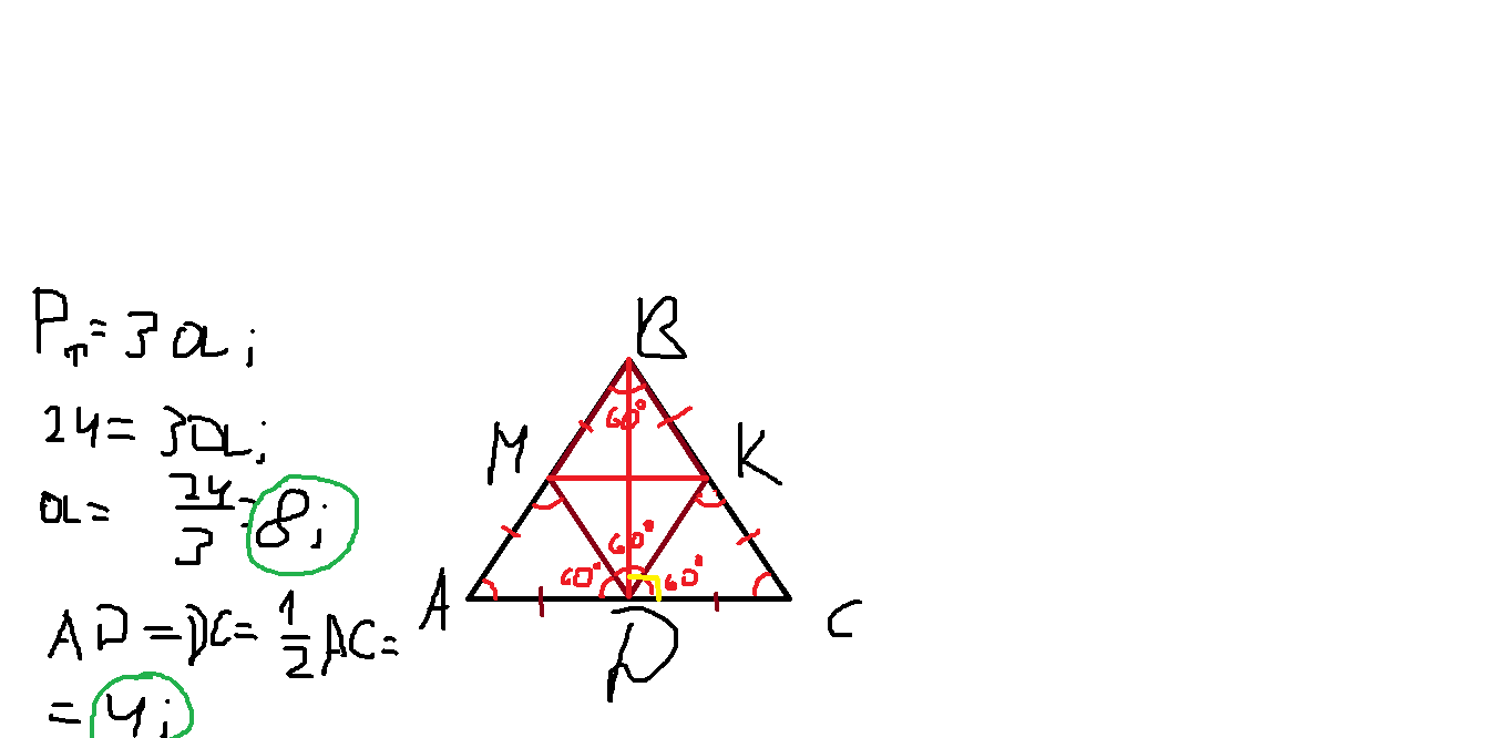 у рівносторонній трикутник було вписано ромб, який має з ним спільний кут. 1.знайди Р ромба, якщо Р трикутника = 24 см? 2. знайди довжини відрізків, на які вершини ромба ділять сторони трикутника. 3. доведи, що сторона ромба= половині сторони трикутника.?