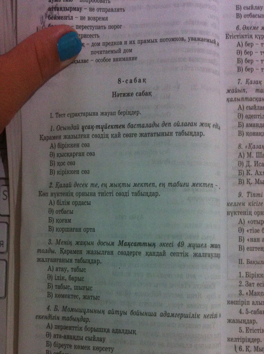 1-б, 2ә, 3-ә, 4-а, 6-а, 7-а, 8-в,