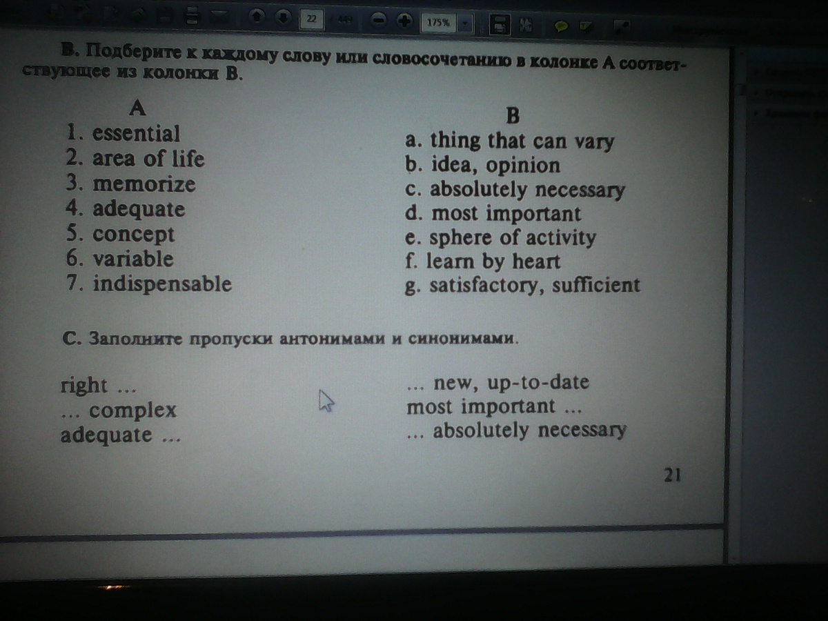 B. Подберите к каждому слову или словосочетанию в колонке А соответствующее из колонки В