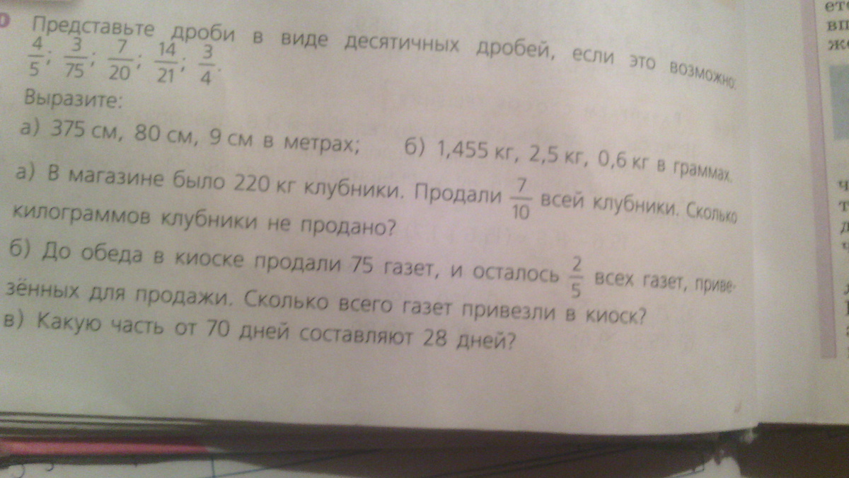 во последний номер: вычислите, обратив дестятичную дробь в обыкновенную: А) 0,75 +1/28 +5/7 Б) 8/15 + 1/3 - 0,2