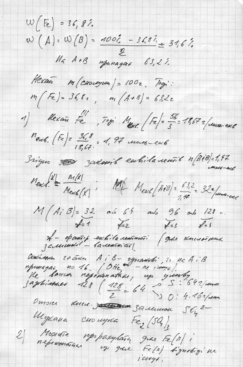 16. Мінерал Х містить Ферум (w(Fe) = 36,8 %) і ще два елементи, масові частки яких однакові. Визначте формулу мінералу та вкажіть ступені окиснення елементів.