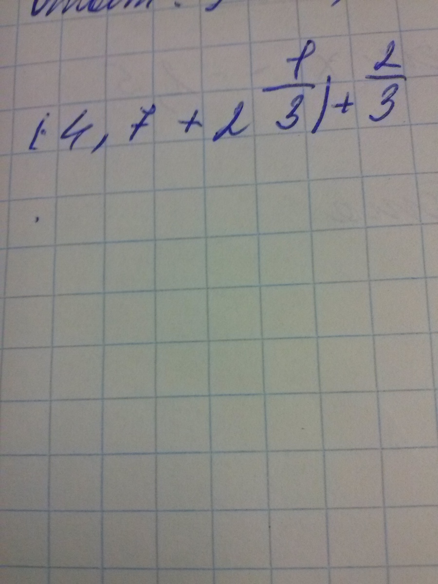 (4 7/10+2 1/3) + 2/3=(47/10+7/3)+2/3=141/30+70/30+2/3=211/30+2/3=2110/30+20/30=2130/30=71