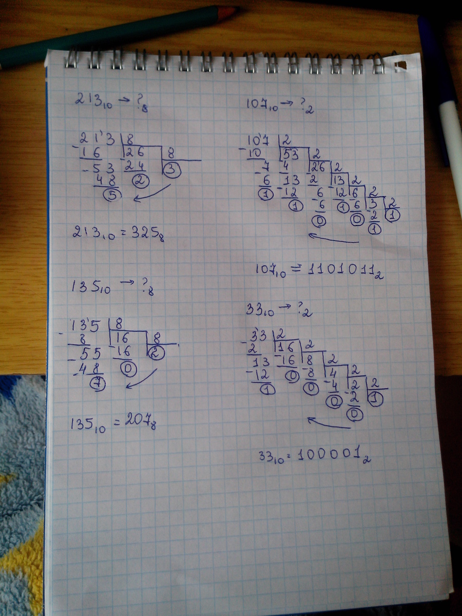 1. 325 и 207 2. 1101011 и 100001 3. 4B2 и 2D3
