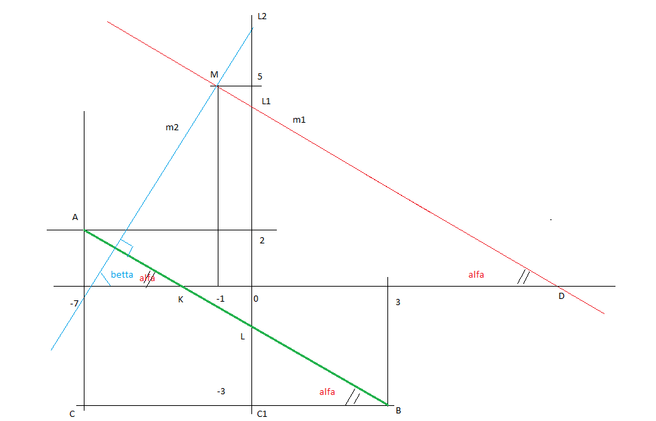 составить уравнение прямых, проходящих через точку М(-1;5) параллельно и перпендикулярно к отрезку АВ, если А(-7;2) и В(3;-3)