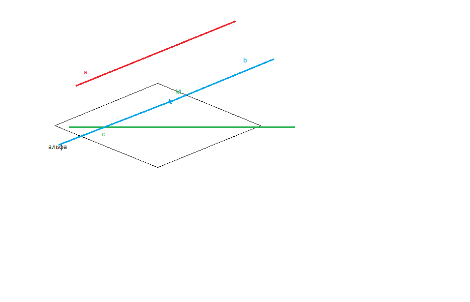 Прямая а параллельна плоскости Альфа.Точка М и прямая с лежат в плоскости Альфа.Через точку М проведена пряма b, параллельную прямой а. Каково взаимное расположение прямых b и c?