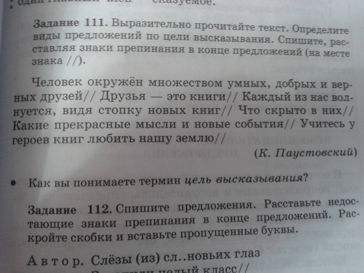 Человек окружен множеством умных, добрых и верных друзей.(повест.)Друзья- это книги.(повествовательное)Каждый из нас волнуется, видя стопку новых книг.(повест.)Что скрыто в них?(вопросит.)Какие прекрасные мысли и новые события?(вопр.)Учитесь у героев книг любить нашу землю!(побудительное)