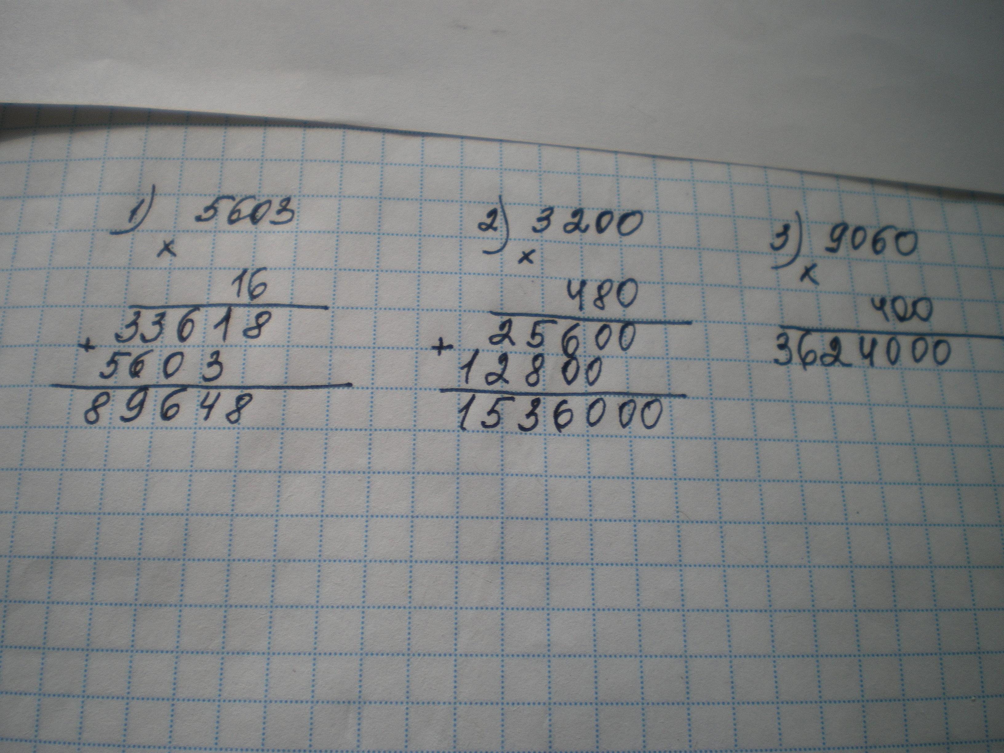 помогите пожалуйста решить примеры в столбик 5603 умножить на 16 , 480 умножить на 3200, 400 умножить 9060.Спасибо зарание!