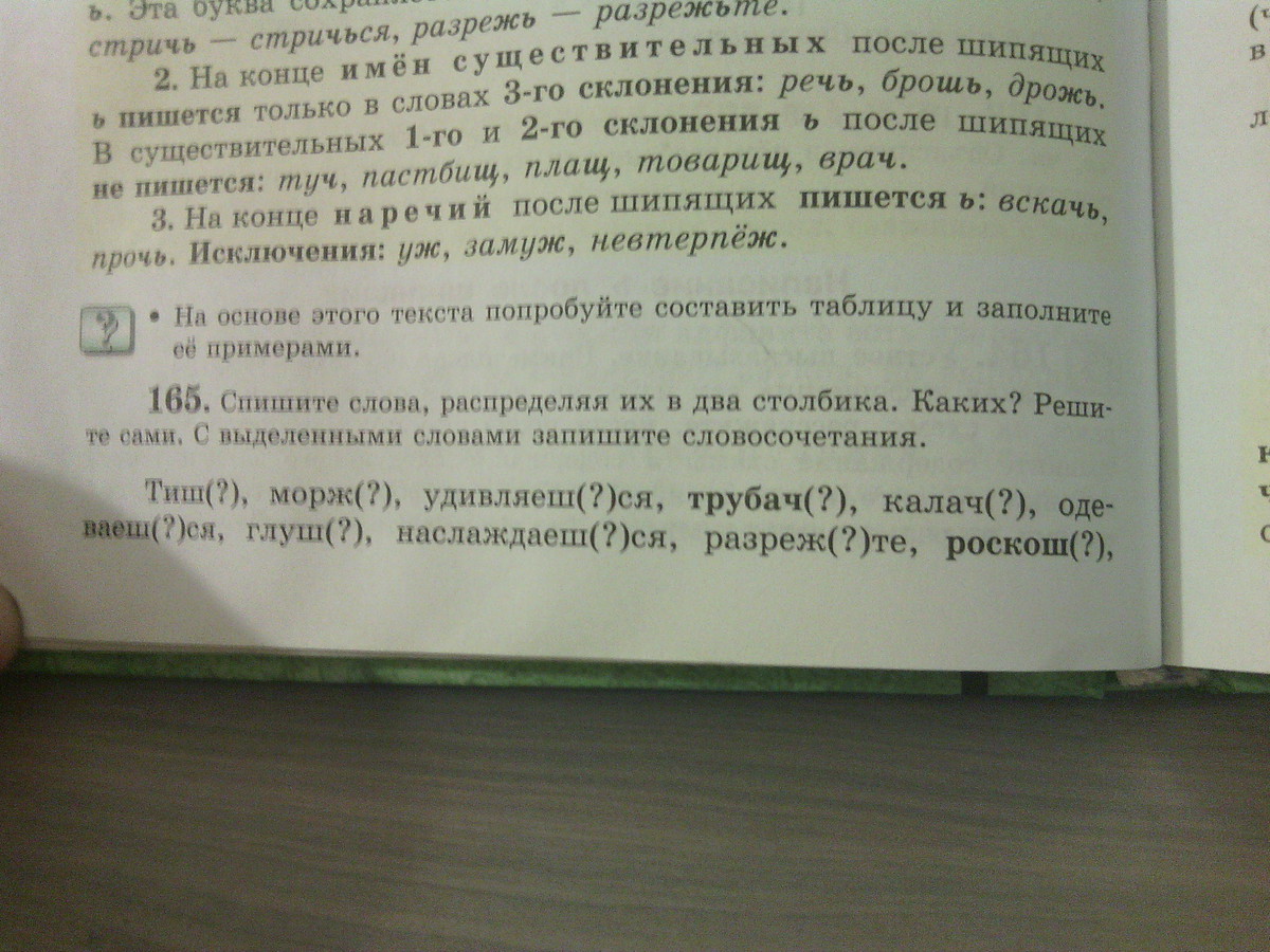 Тишь, морж, удивляешься, трубач, калач, одеваешься, глушь, наслаждаешься, разрежьте, роскошь, вскачь, молодежь, плачьте, крепыш, любишь,горечь, из-за туч, превозмочь, пейзаж, дичь, плащ, стеречь, помощь, разговариваешь, катаешься.