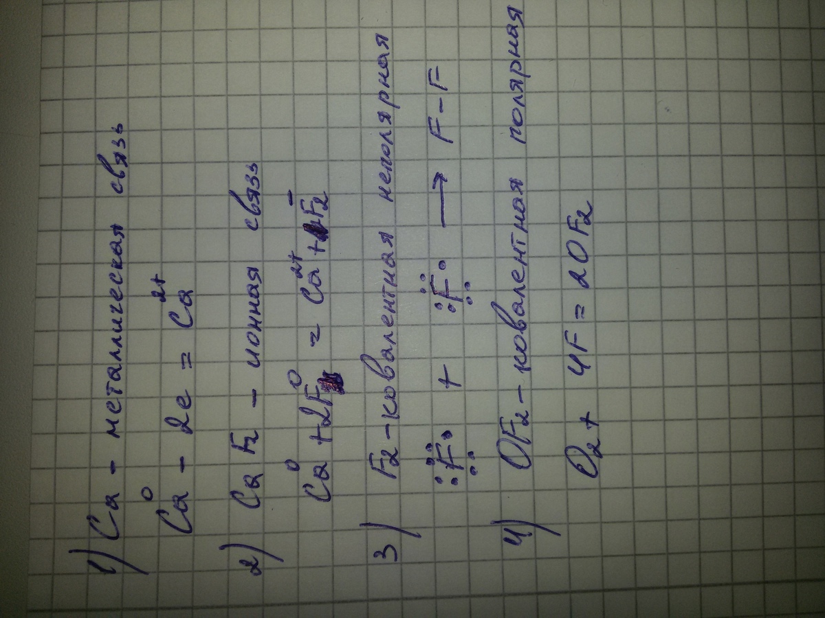 Укажите тип химической связи и составьте схемы ее образования в веществах,имеющих формулы:Са,CaF2,F2,OF2