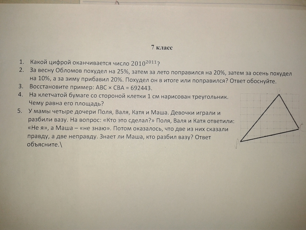 У мамы четыре дочери Поля, Валя Катя и маша.Девочки играли и разбили вазу. На вопрос:"Кто это сделал? "Поля , Валя Катя ответили:Не я, а маша "не знаю,,.Потом оказалось что две из них сказали правду а две неправду.Знаит ли маша кто разбил вазу? ответ объясните