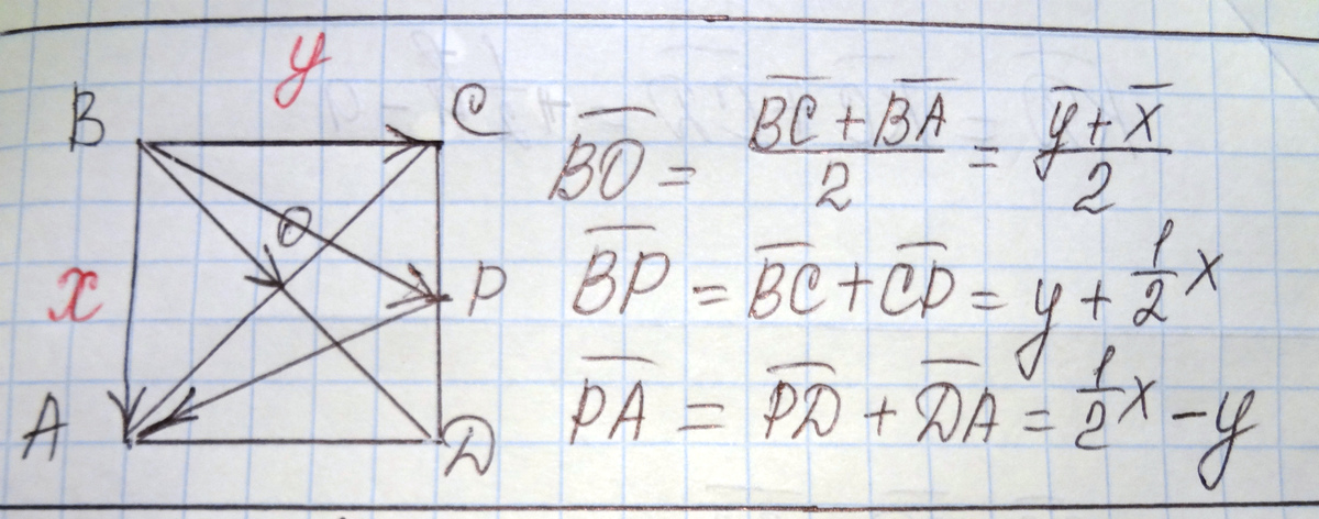 на стороне сд квадрата абсд лежит точка р так что ср равно рд о-точка пересечения диоганалей. выразите векторы во,вр,ра через векторы x=ва и y=вс. решите пожалуйста
