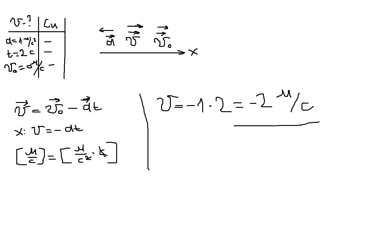 Ускорение тела равно 1 м/с2 и направлено противоположно его скорости. На какую величину изменится скорость тела за 2 с движения?
