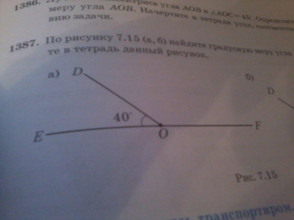 По рисунку 7.15(а,б)найдите градуснкю меру угла DOF.Перечертите в тетрадь данный рисунок.