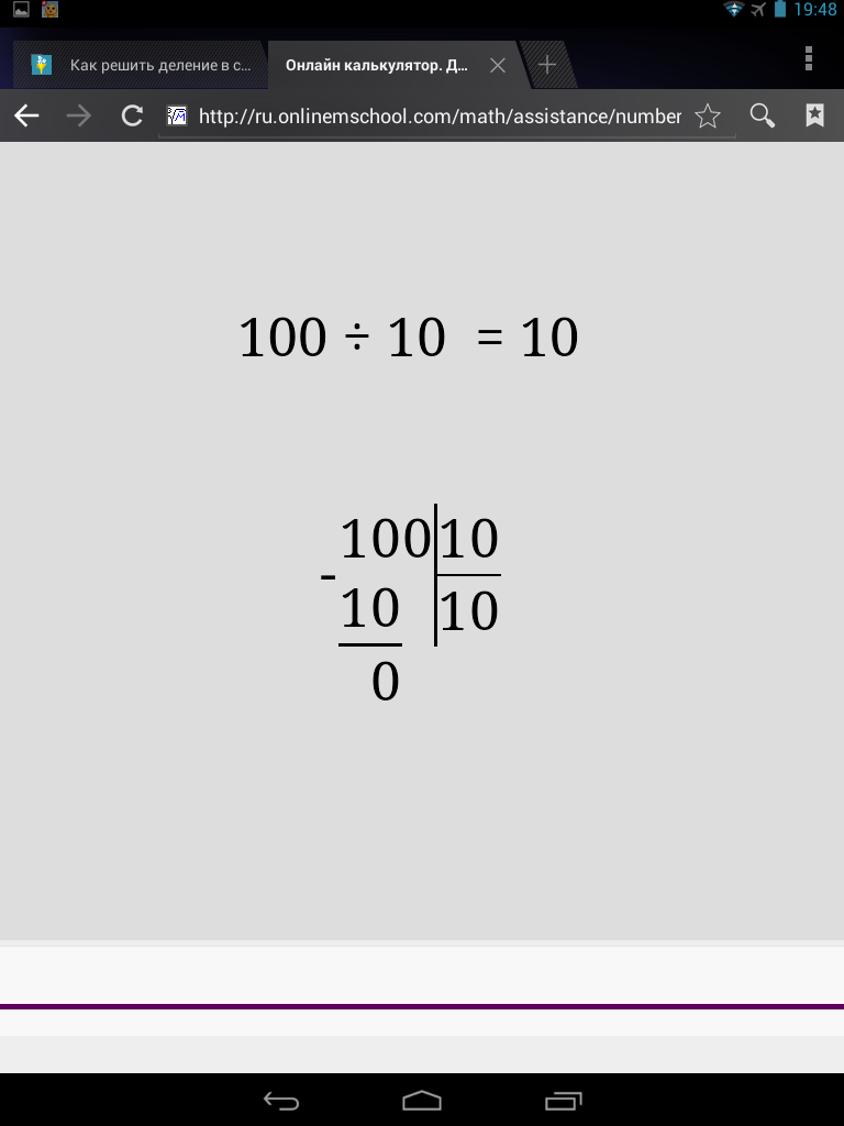 Например берем числа 100:10